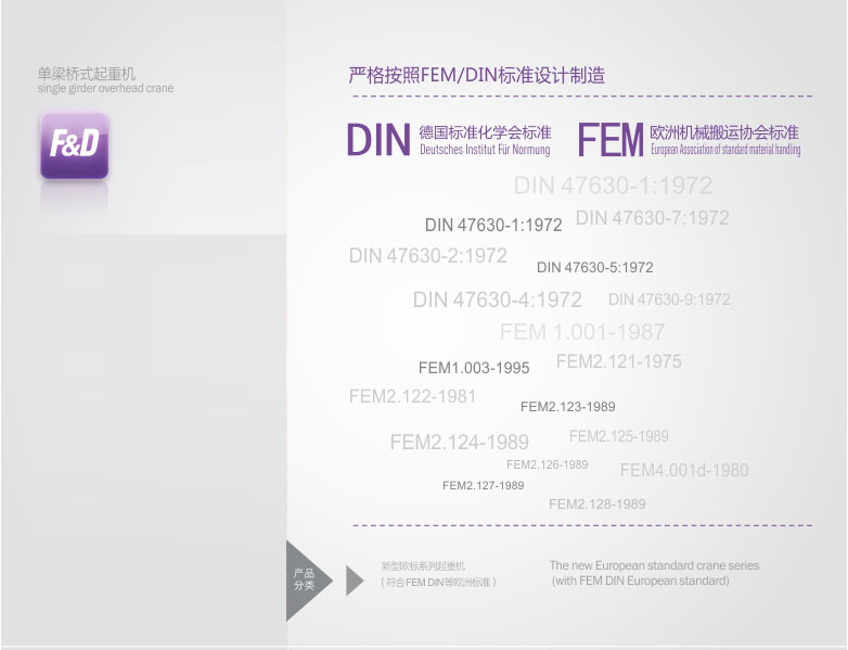 2、 該產(chǎn)品技術(shù)先進(jìn),設(shè)計(jì)按照國際標(biāo)準(zhǔn):DIN(德國)、FEM(歐洲)、ISO(國際),具有剛性強(qiáng)、自重輕、結(jié)構(gòu)設(shè)計(jì)出眾等優(yōu)點(diǎn),能有效地節(jié)約廠房空間和投資成本,行走結(jié)構(gòu)特點(diǎn)獨(dú)特。